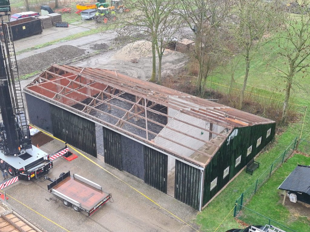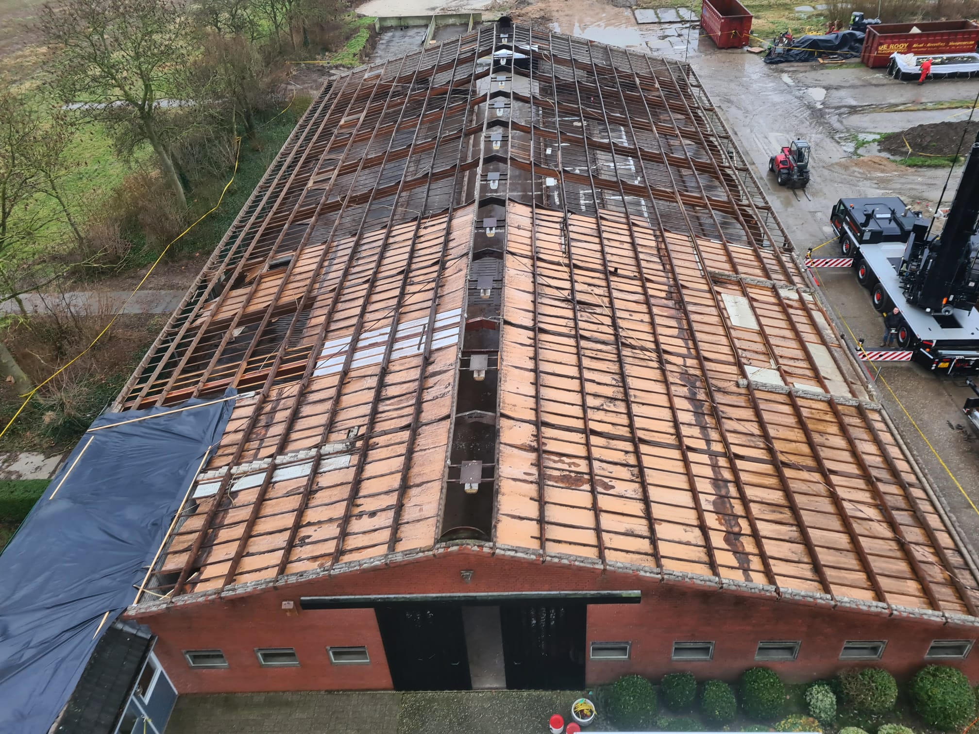 We removed a total of 1717 m2 of corrugated asbestos containing sheets from these stables. We did an asbestos inventory which showed that asbestos was present. After the asbestos was removed, our sistercompany Bunt Montage renovated the roof.